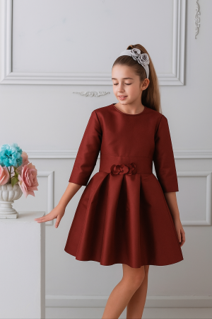 La falda con tablas marcadas crea un volumen sofisticado y armonioso, mientras que el detalle floral situado en uno de los laterales aporta un acabado delicado y encantador que hace de este diseño una pieza verdaderamente única. Ideal para comuniones, bodas, arras o cualquier ocasión que requiera un look distinguido, este vestido combina estilo, comodidad y distinción en cada uno de sus detalles.