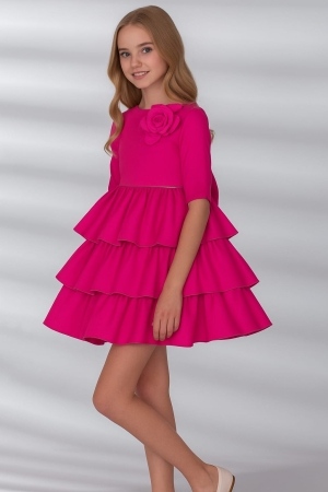 Descubre la delicadeza y distinción de este vestido de ceremonia para niña confeccionado en mikado verde turquesa, una prenda diseñada para realzar los momentos más especiales. Su media manga aporta un toque clásico y refinado, mientras que la falda en vuelo con volantes crea un movimiento armonioso y lleno de encanto a cada paso. El diseño se completa con un exclusivo detalle floral en el hombro, elaborado cuidadosamente para aportar un toque romántico, y un lazo tipo broche en la parte trasera que acentúa la silueta con elegancia. Perfecto para eventos, arras, comuniones o celebraciones donde la protagonista necesita lucir un estilo único, cómodo y memorable.