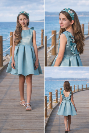 Vestido de ceremonia para niña confeccionado en delicada bambula fucsia, un tejido ligero y vaporoso que aporta movimiento y sofisticación. Su diseño destaca por las mangas con volante, cintura adornada con detalle floral y falda con caída fluida, logrando un look refinado y cómodo. Ideal para bodas, comuniones, fiestas y ocasiones especiales, este vestido combina elegancia, color y estilo atemporal para momentos inolvidables.
