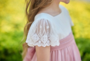 Vestido de gasa para niña con amplio vuelo y una caída ligera que aporta movimiento y elegancia en cada paso. Incorpora forro interior de algodón para garantizar comodidad y suavidad durante todo el día. Destaca su bonito fajín al tono con delicado aplique de flores, que añade un toque romántico y sofisticado al diseño. La abertura trasera con cremallera invisible asegura un ajuste perfecto y un acabado limpio. Ideal para ceremonias y eventos especiales, es un vestido encantador que combina delicadeza, estilo y un aire etéreo muy refinado.